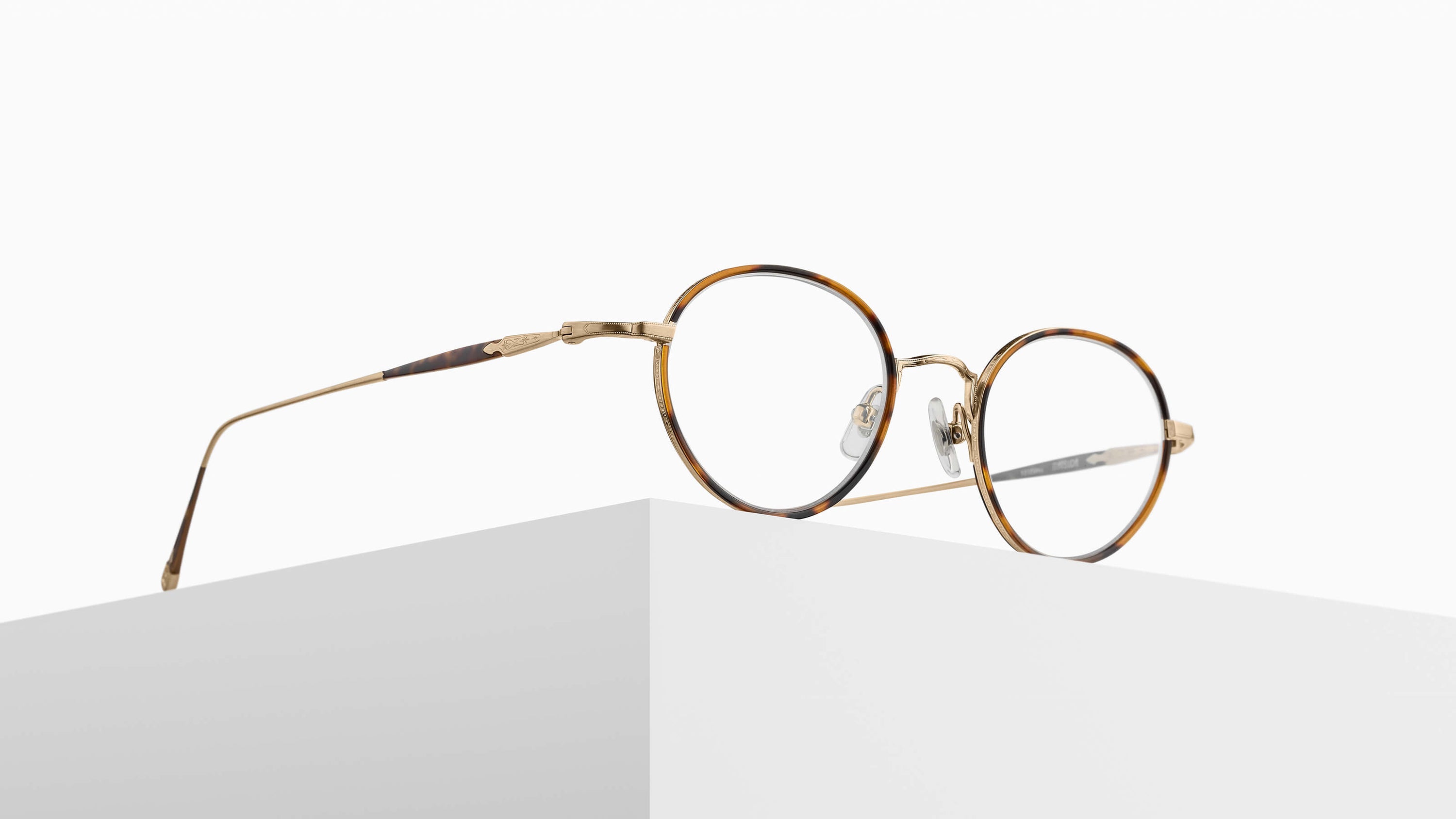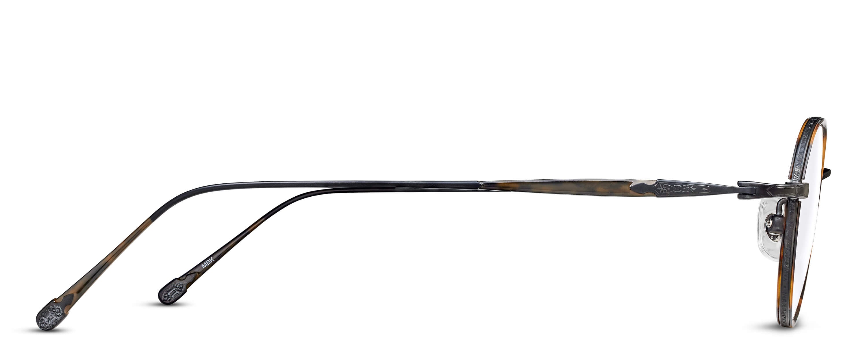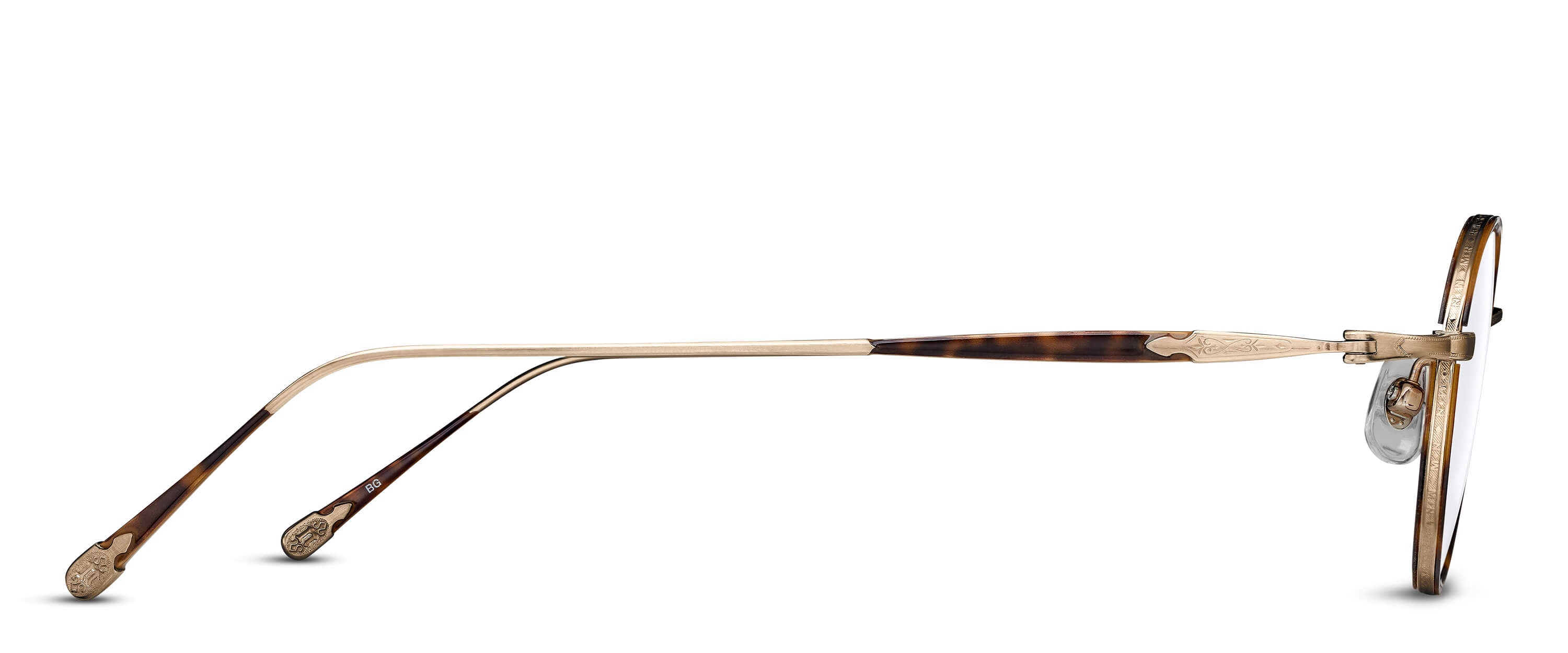 Our 10189H, a standout in our Heritage Collection, is crafted in titanium and finished with precious metals. Now elevated with a distinctive acetate insert. Hand-lacquered temples highlight an Art Deco motif.