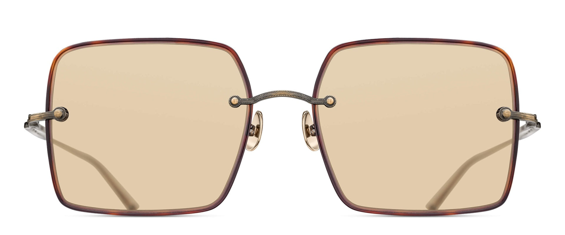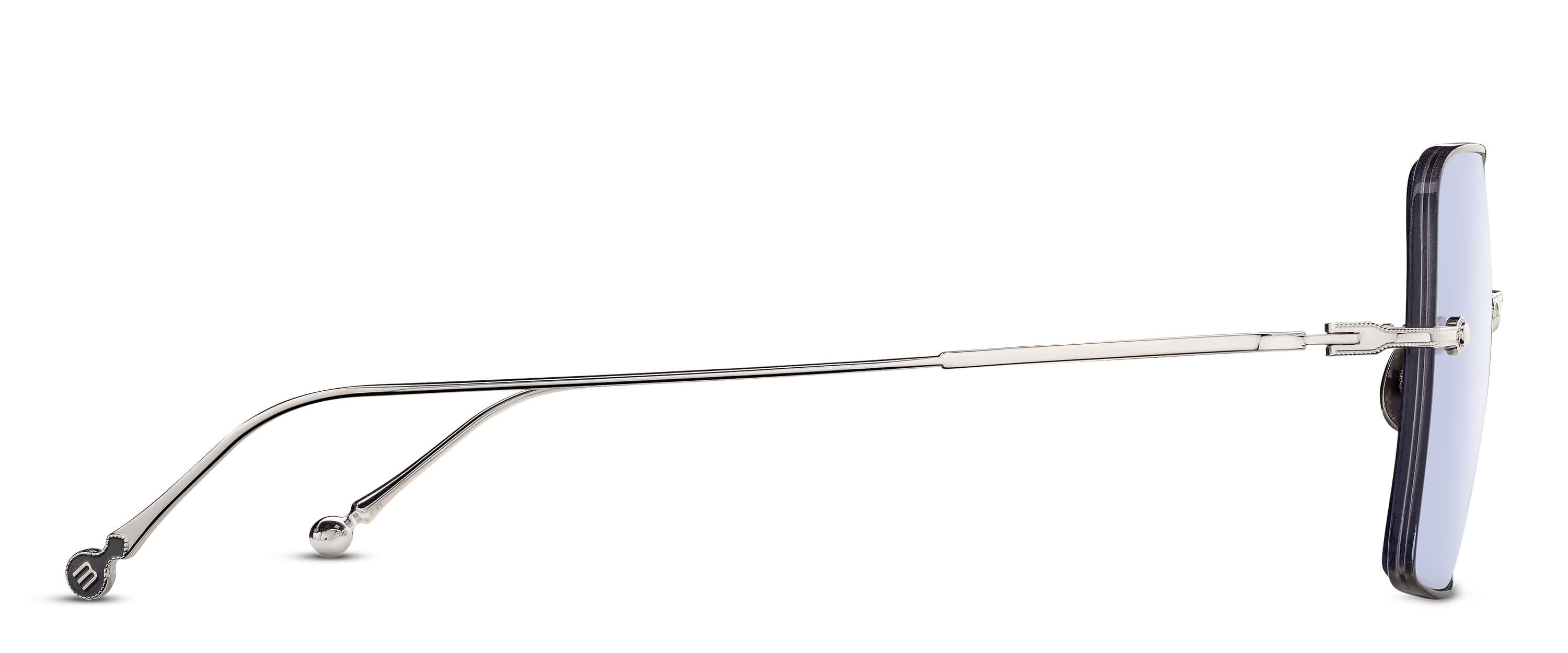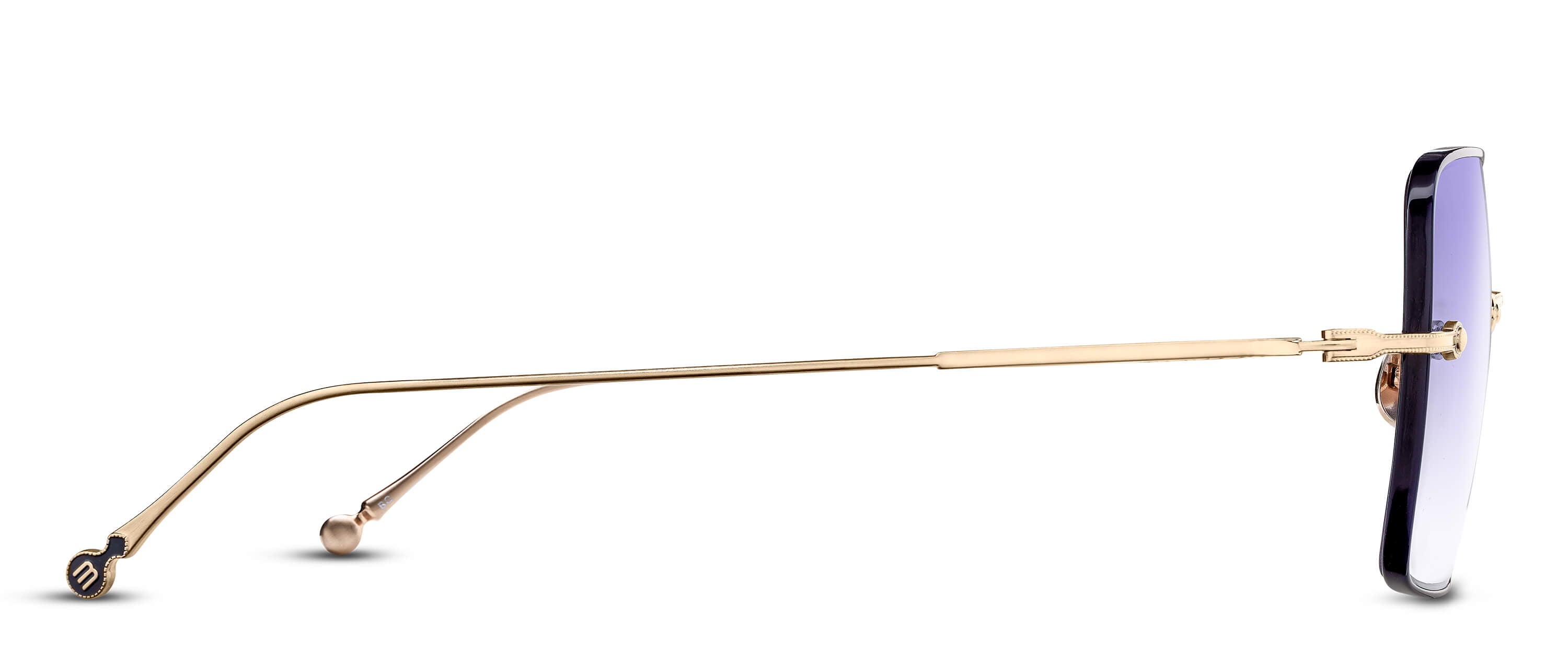 The Matsuda rimless collection reimagines classic rimless construction for today. The M5005 is a modern square shape elegantly combined with an engraved bridge and beta Titanium temples finished in 22.5k gold and other precious metals.