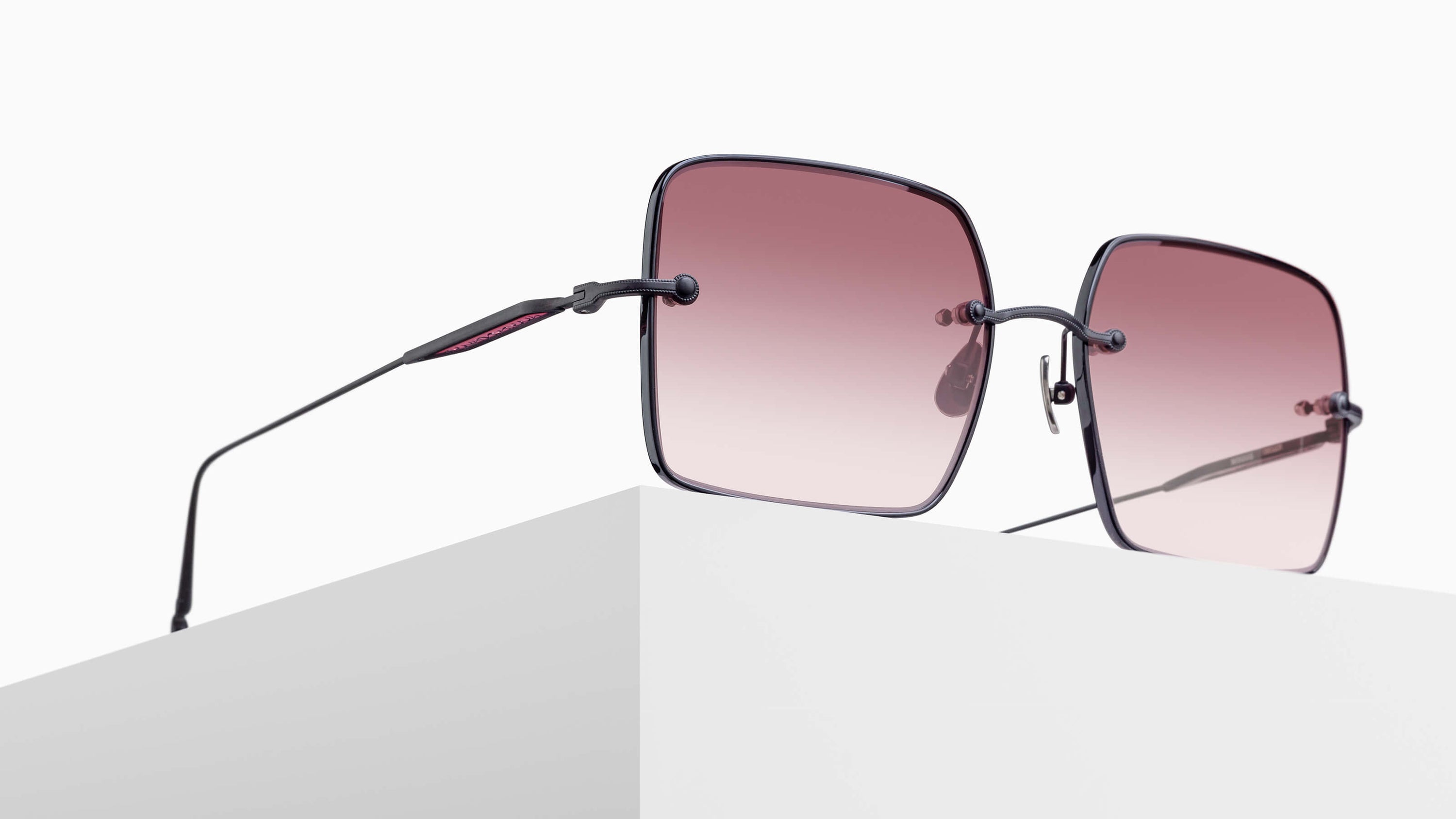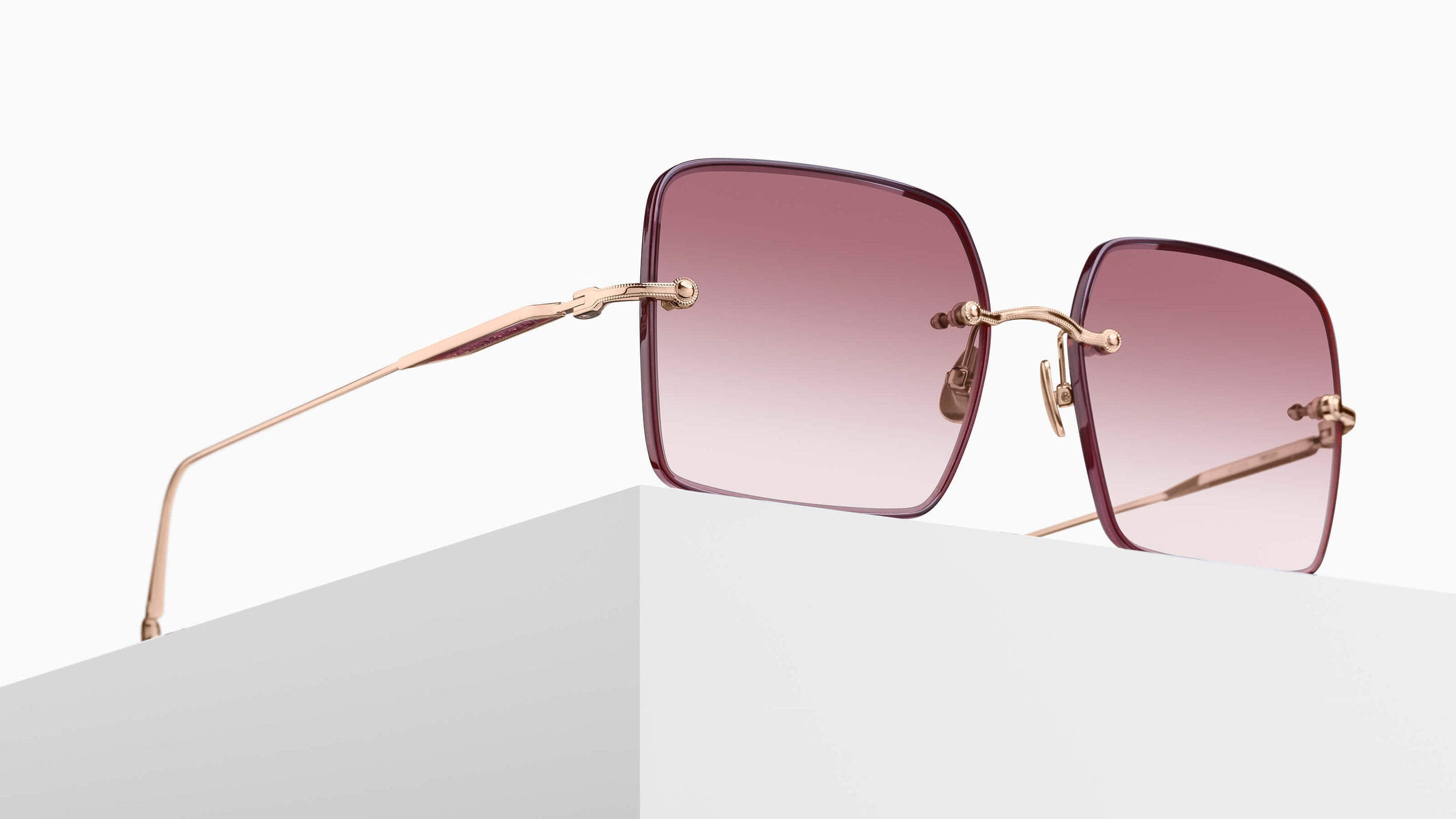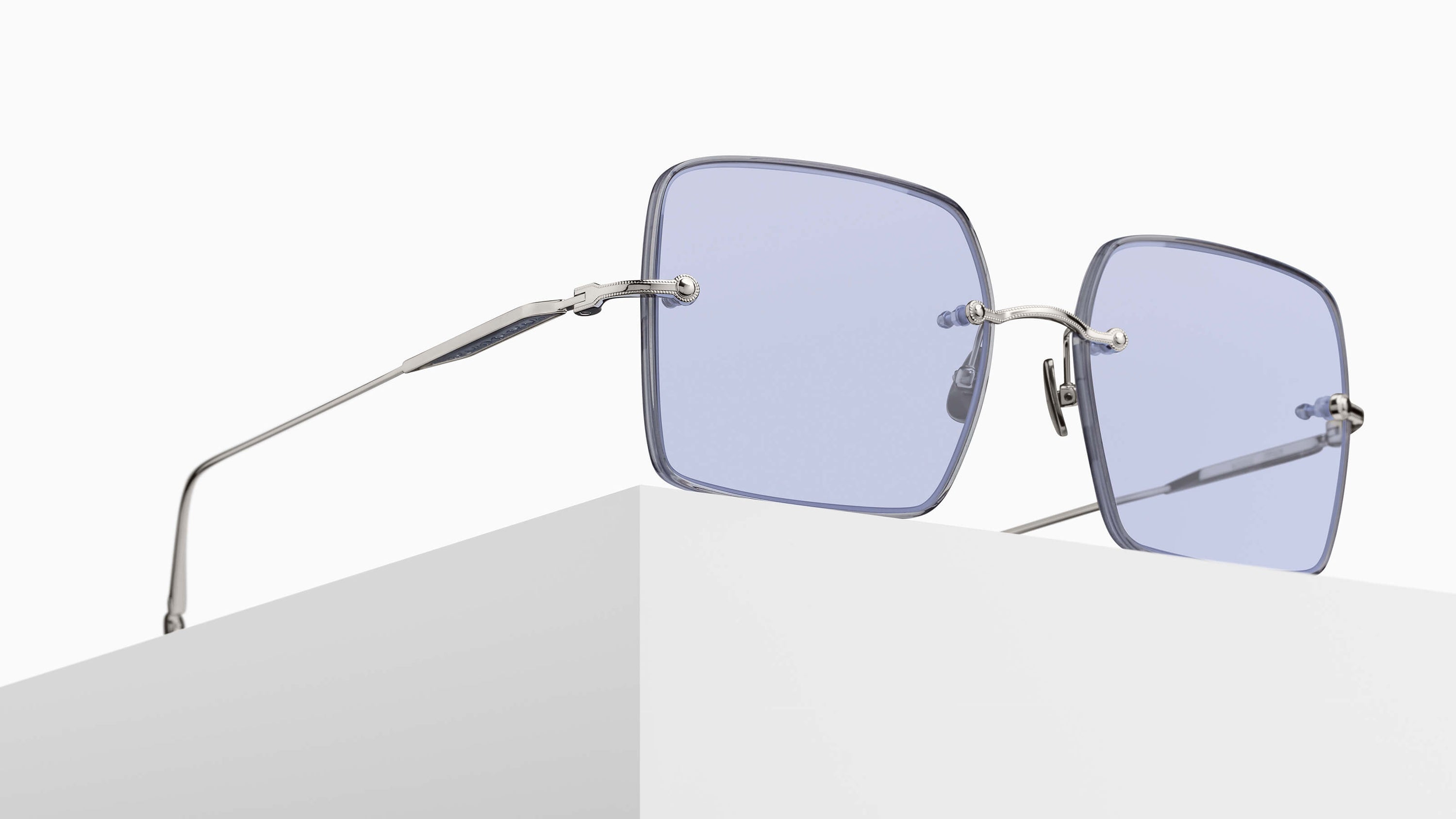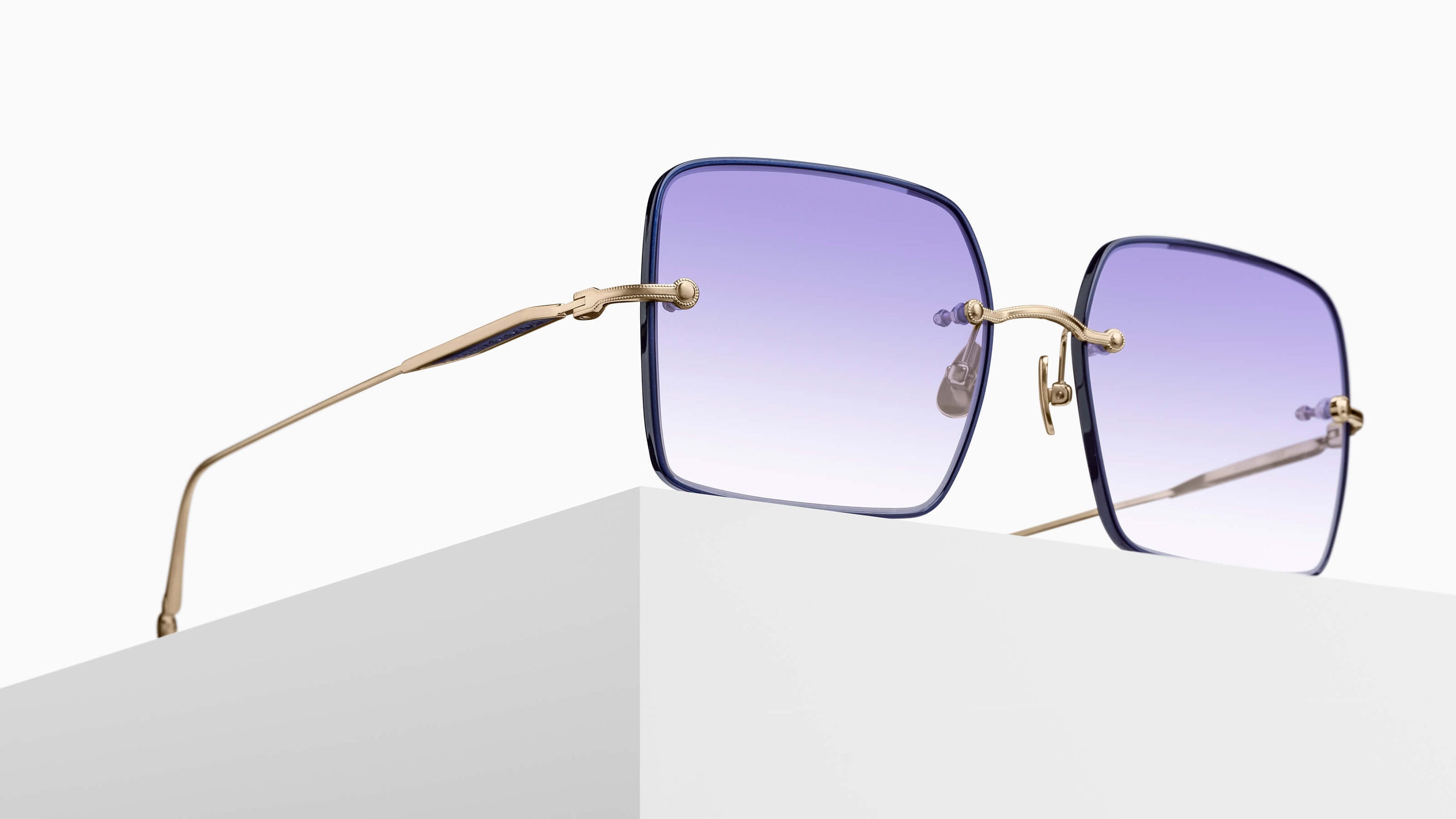 The Matsuda rimless collection reimagines classic rimless construction for today. The M5005 is a modern square shape elegantly combined with an engraved bridge and beta Titanium temples finished in 22.5k gold and other precious metals.