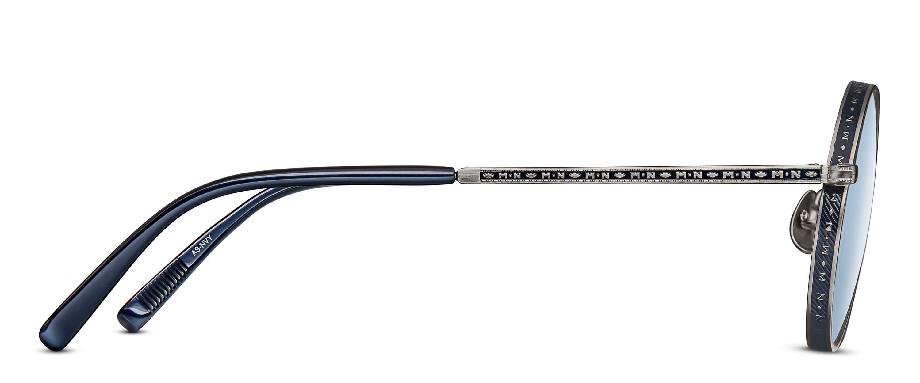 Paying homage to our history, the bold round M3100 features pressed titanium rims incorporating our signature M+N motif. The intricate engraving is highlighted by hand applied lacquer that beautifully contrasts the precious metal plating.