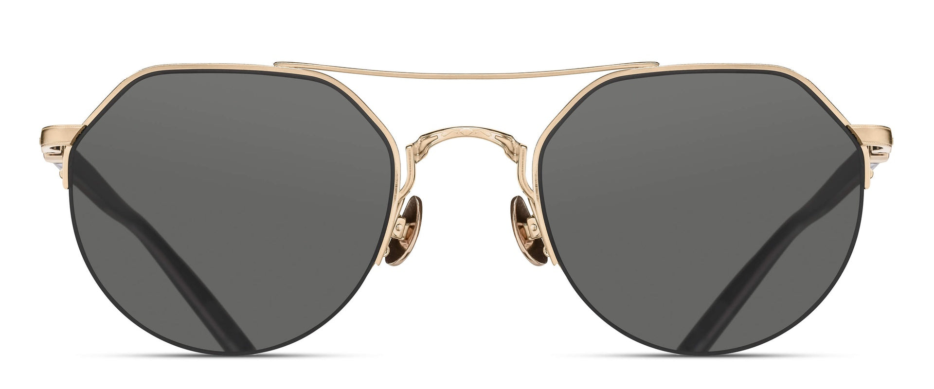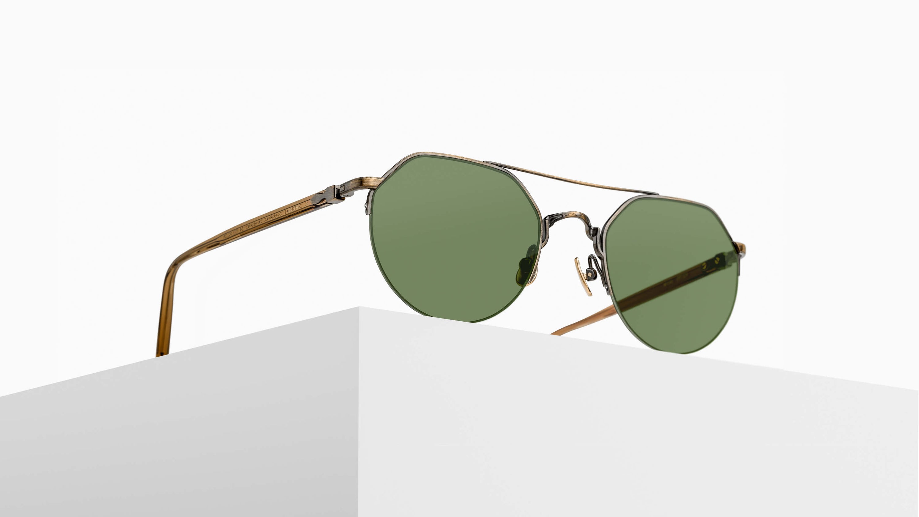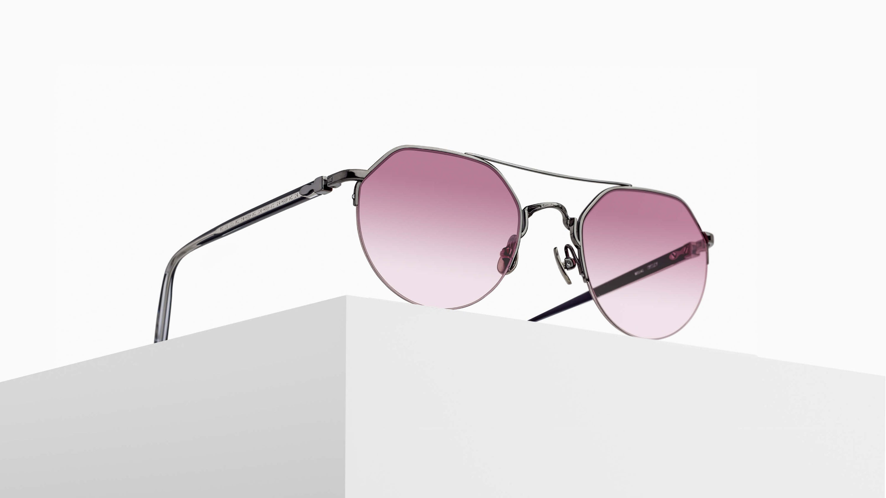 The M3141 is a crown pantos sunglass frame, featuring a semi rimless Titanium construction paired while filigree adorned temples made of Japanese acetate.