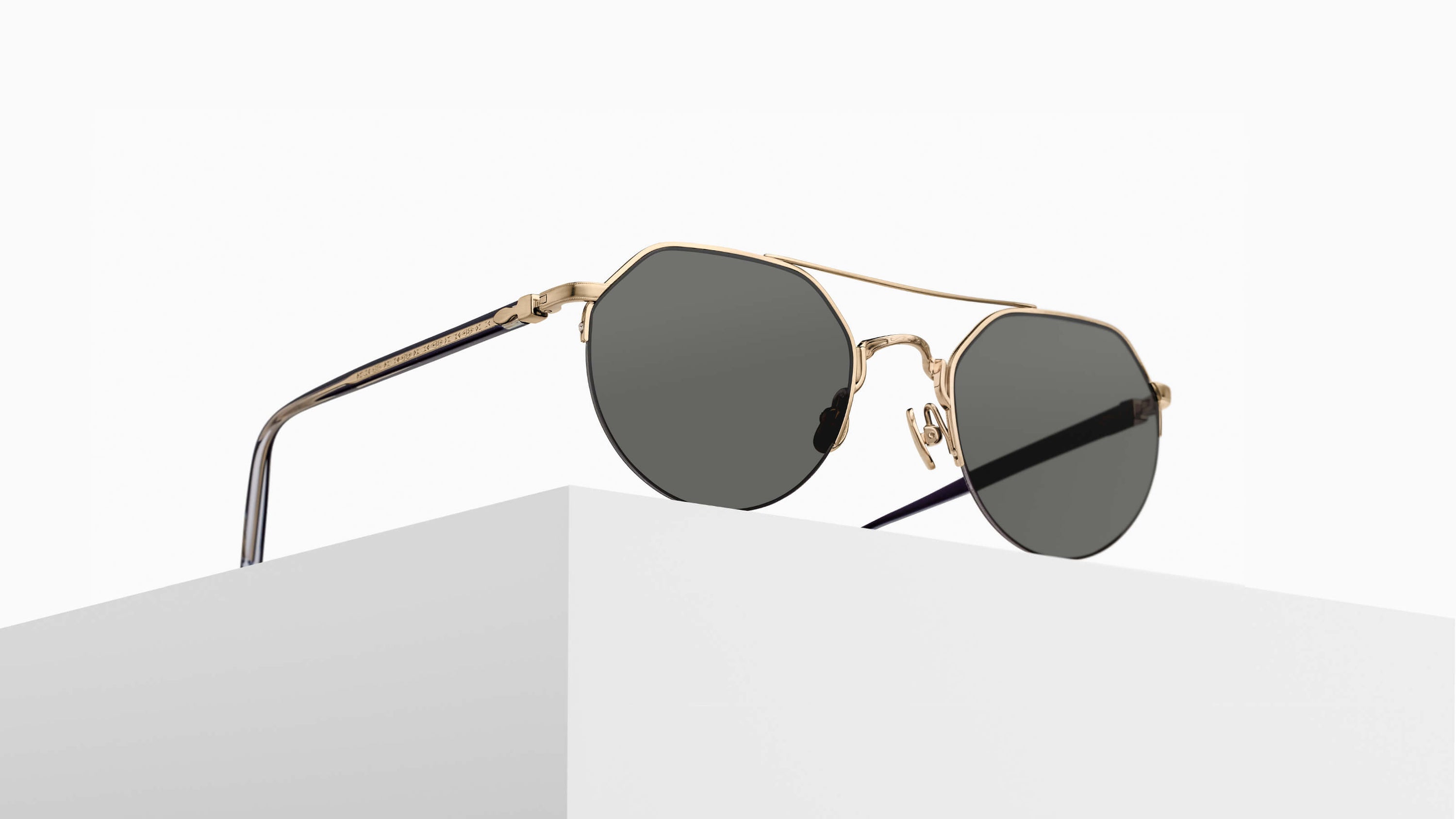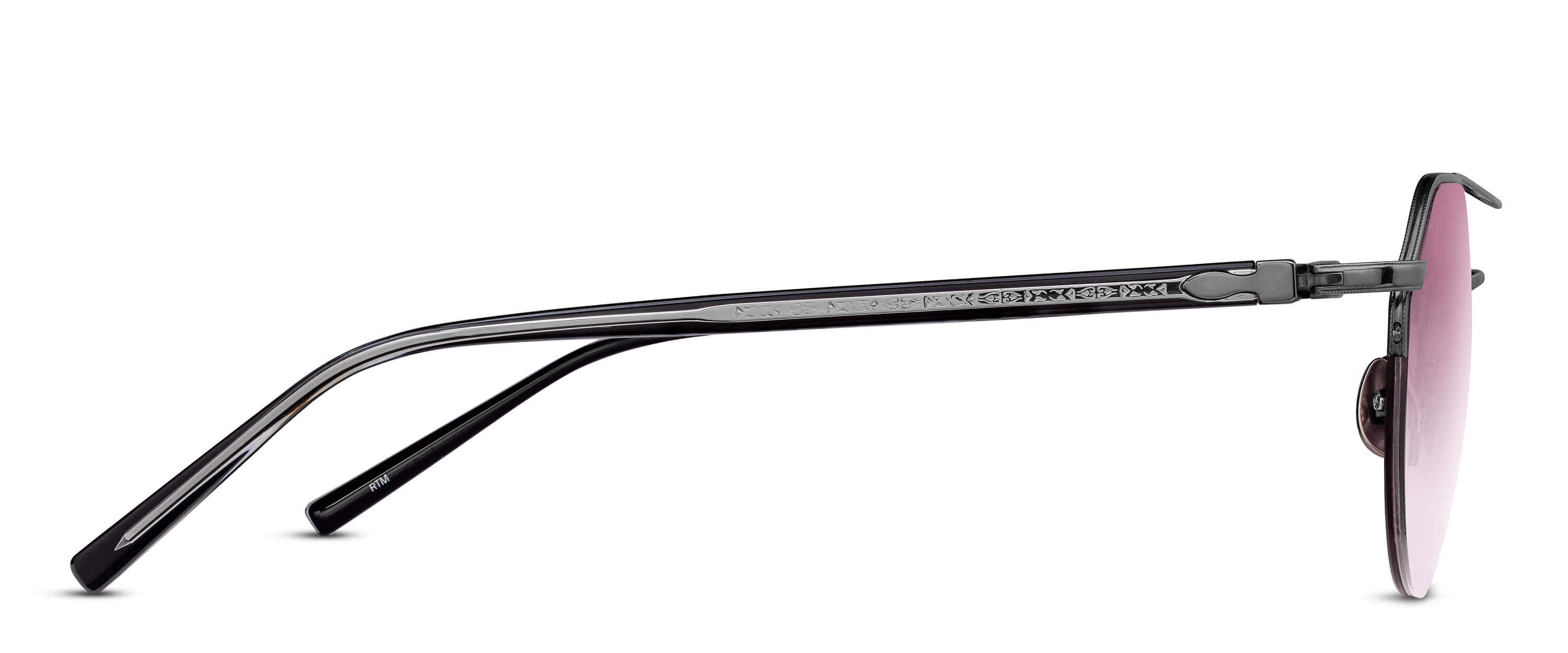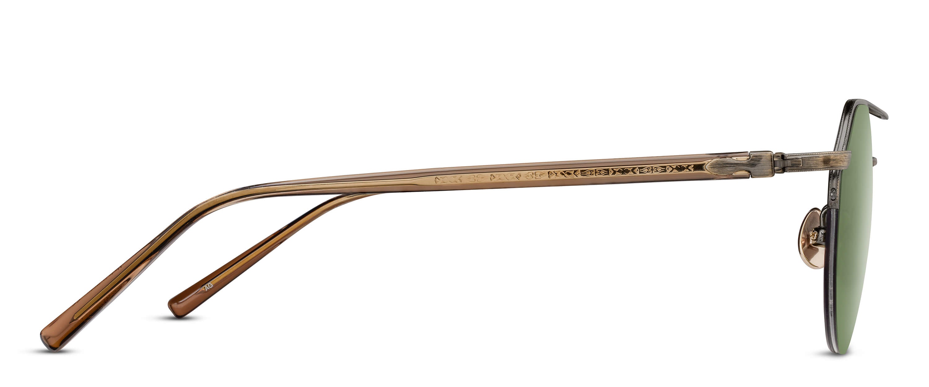 The M3141 is a crown pantos sunglass frame, featuring a semi rimless Titanium construction paired while filigree adorned temples made of Japanese acetate.