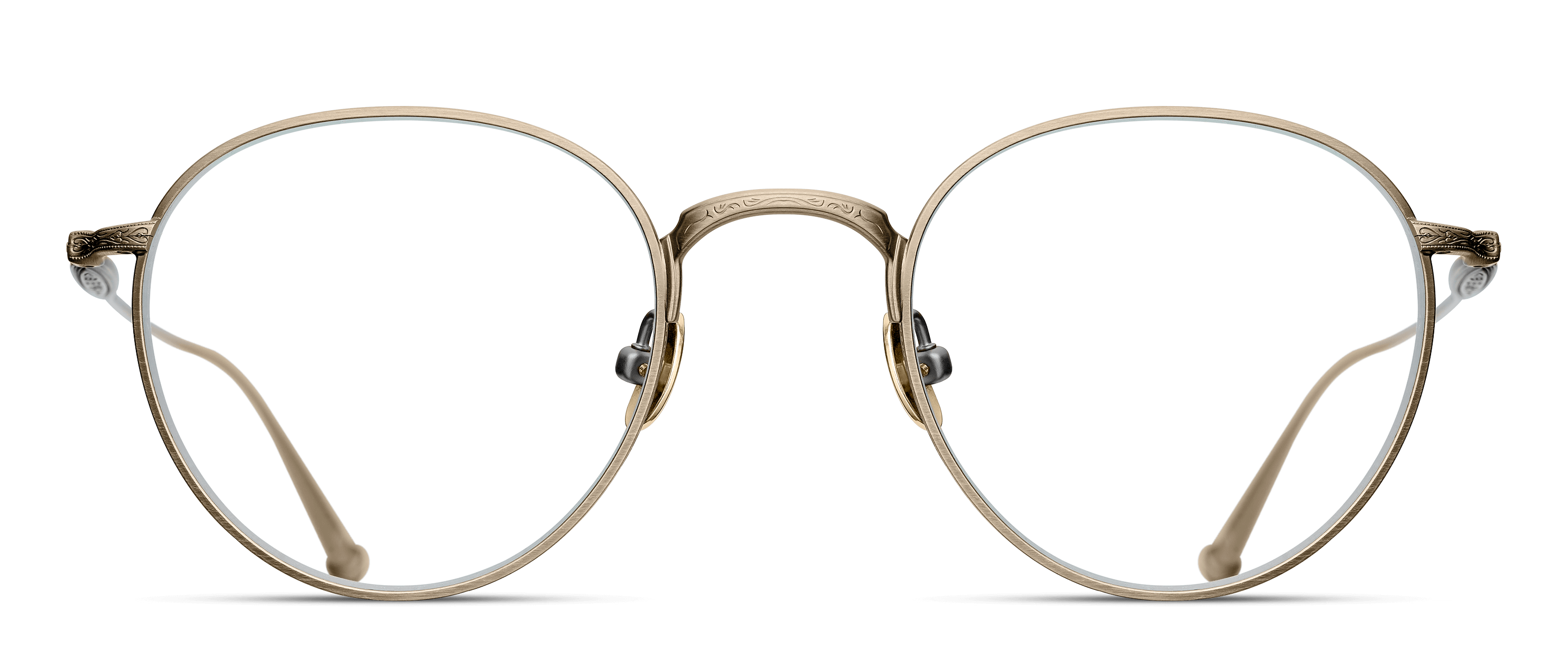 Designed as a part of a thin, minimal, lightweight optical series, the M3085 is a modern pantos shape hand crafted of high-grade titanium. Engraving adorns the top and bottom of the beta titanium temples, complementing the classic shape.