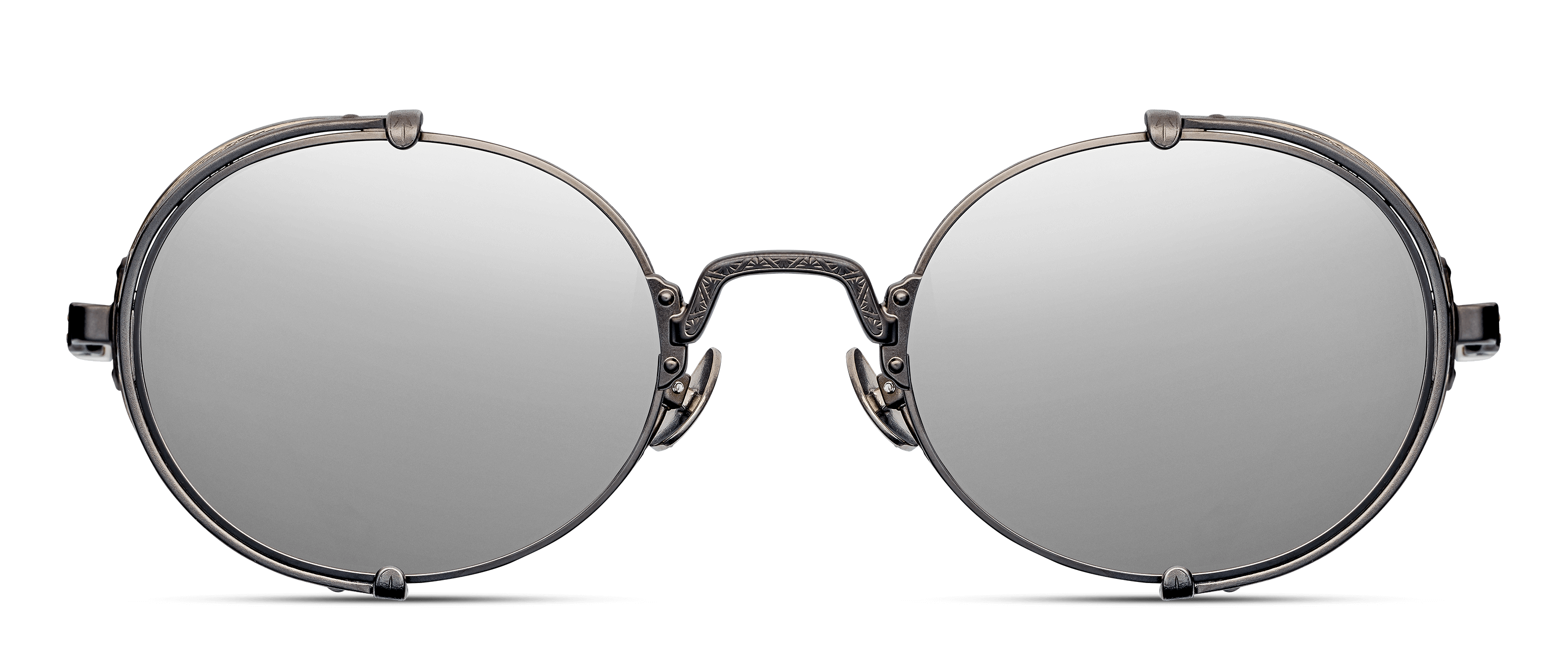 Inspiré des lunettes de sécurité portées à l'époque des machines du début du 20e siècle, le 10610H présente une forme de verre ronde avec une protection latérale perforée contrastante et des branches en acétate japonais sculptées.