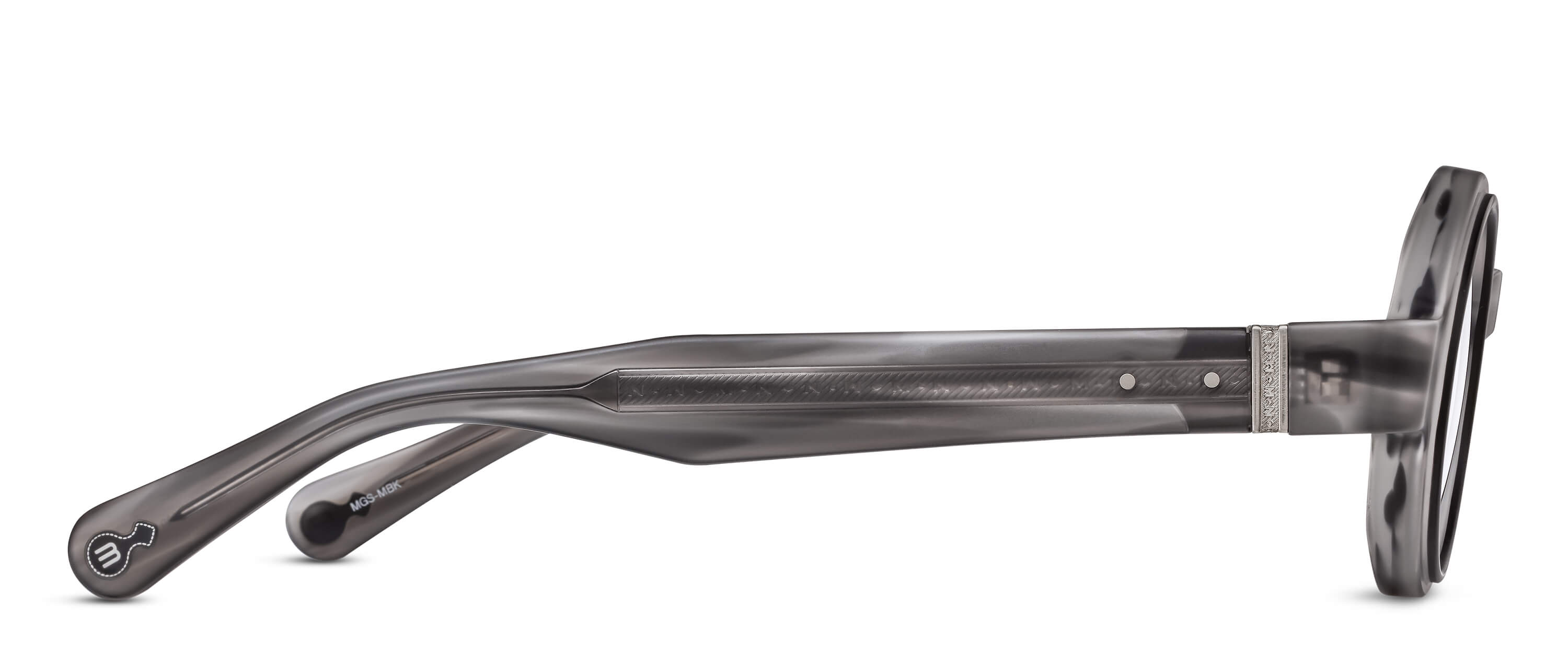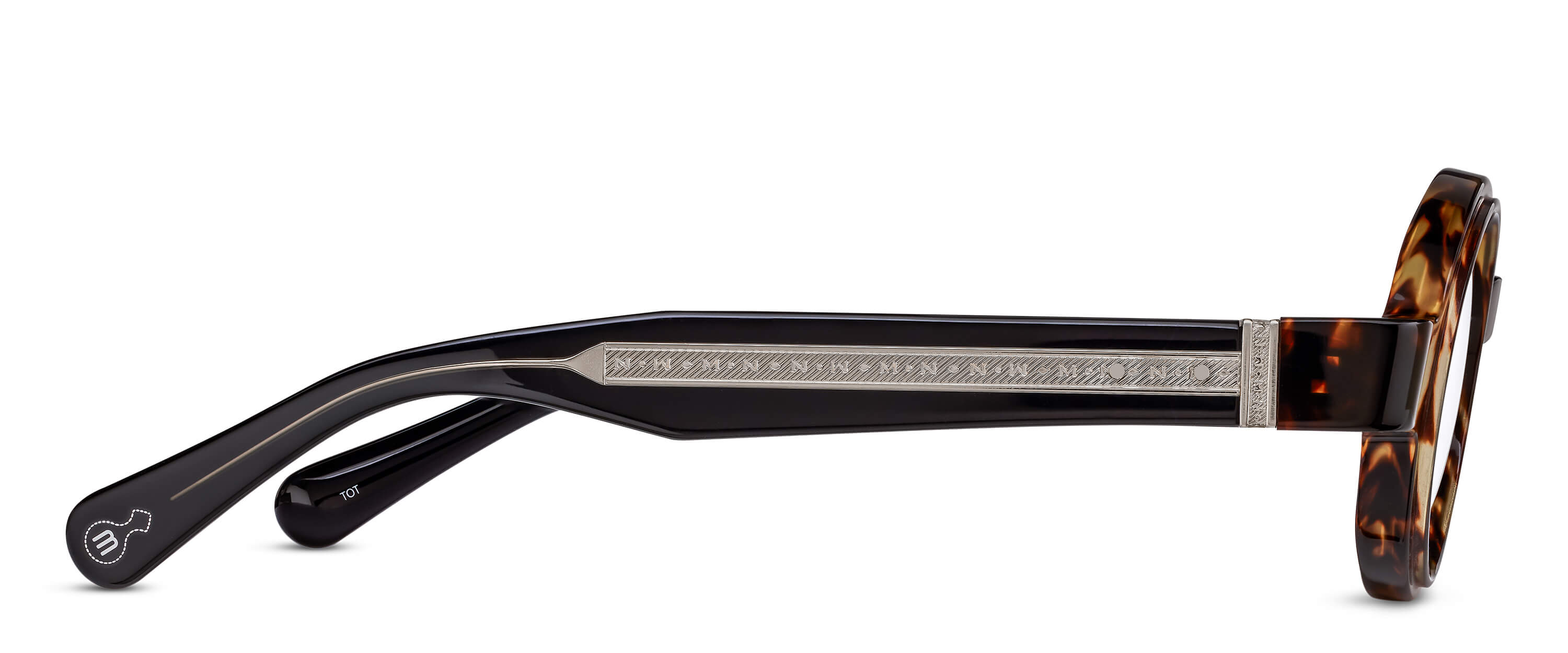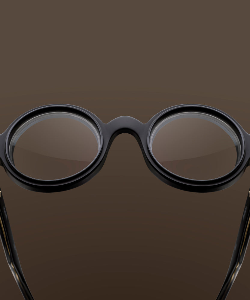 The M1041 is a bold round acetate frame with character, defined by sculptural volumes and confident architectural presence. The front is highlighted by a contrasting curved bridge that adds depth, while balancing structure and elegance through precise Japanese craftsmanship.