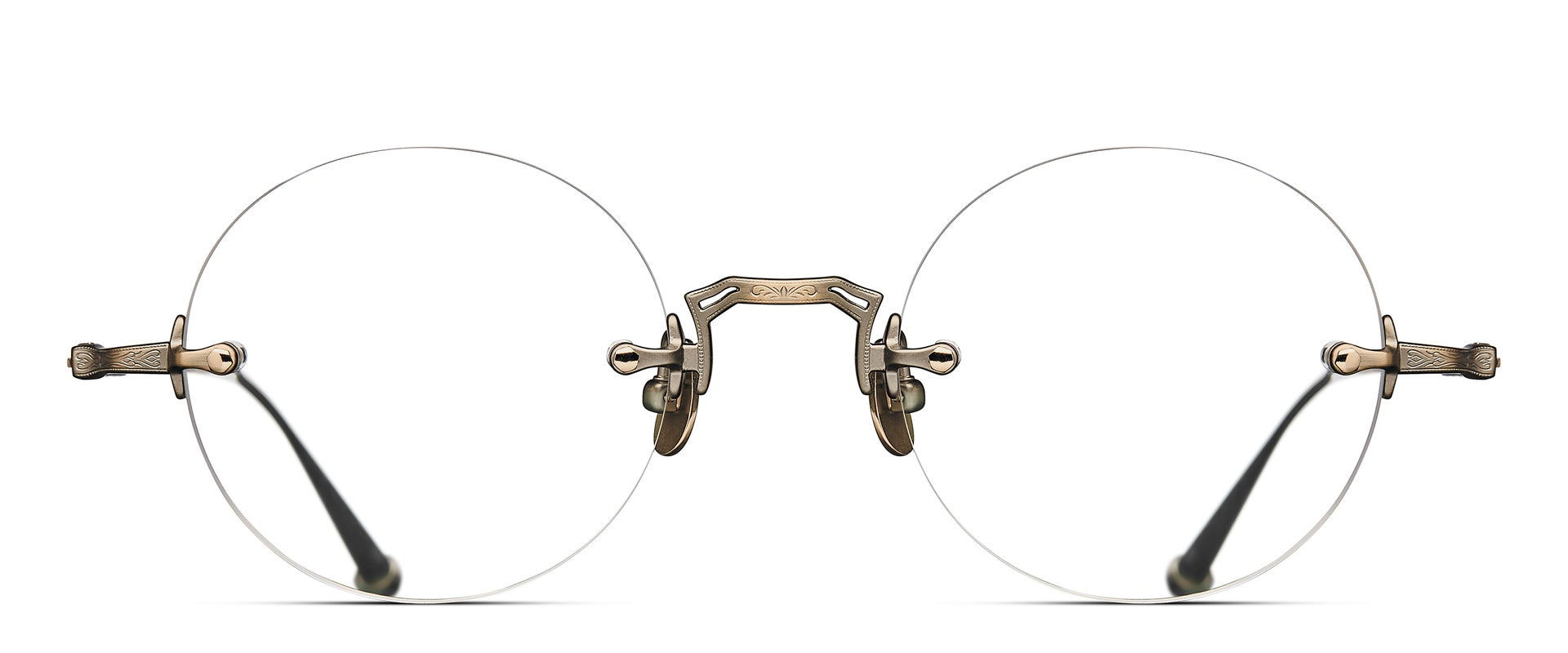 The M5007 is a classic round rimless style crafted of ultra lightweight titanium. Rimless designs originated in the late 1800's as an innovation to make eyewear lighter and more comfortable. Our modern interpretation stands out with hand engraved details adorning the top and bottom of the beta titanium temples, complementing the classic construction.